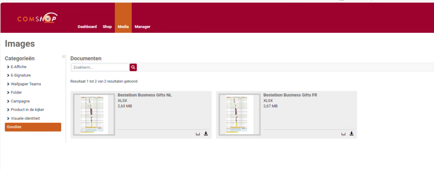 Het bestelformulier voor goodies vindt u in de Comshop, onder Media > Goodies.