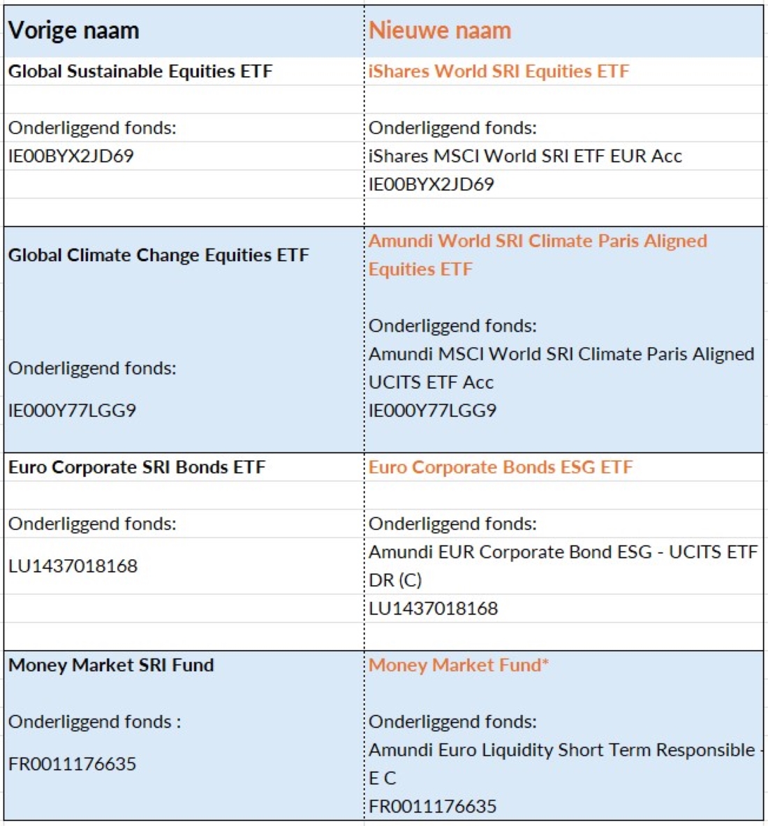 Het gaat enkel om een naamswijziging. Het beleggingsbeleid, het beheersreglement en de ESG-doelstellingen van de fondsen veranderen niet.