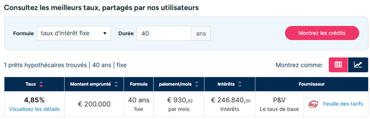Bonne nouvelle ! Depuis quelques semaines, l’offre de crédit hypothécaire sur 40 ans de P&V est désormais référencée sur la plateforme Guide-Epargne.be.